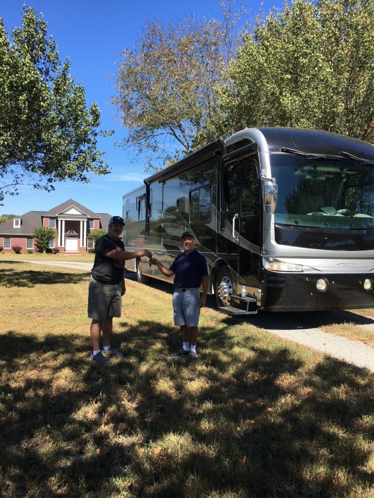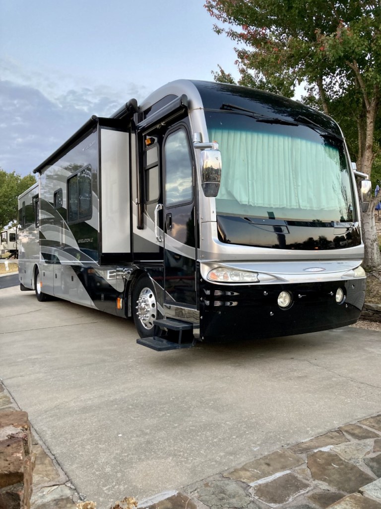 Once I was told…. you need to find the floor plan that you want, then define your budget, then set some things you want (in our case it was a diesel pusher, side radiator, 1 1/2 baths, my preferred color scheme – silver and black – 40 ft long and enough accommodation for our children as they come see us). In early September we landed in New York, we went to see a few rigs but then the one we wanted happened to be in Conway, Arkansas and it was owned by a great man (Dr Sam) who took great care of it while in his possession.
