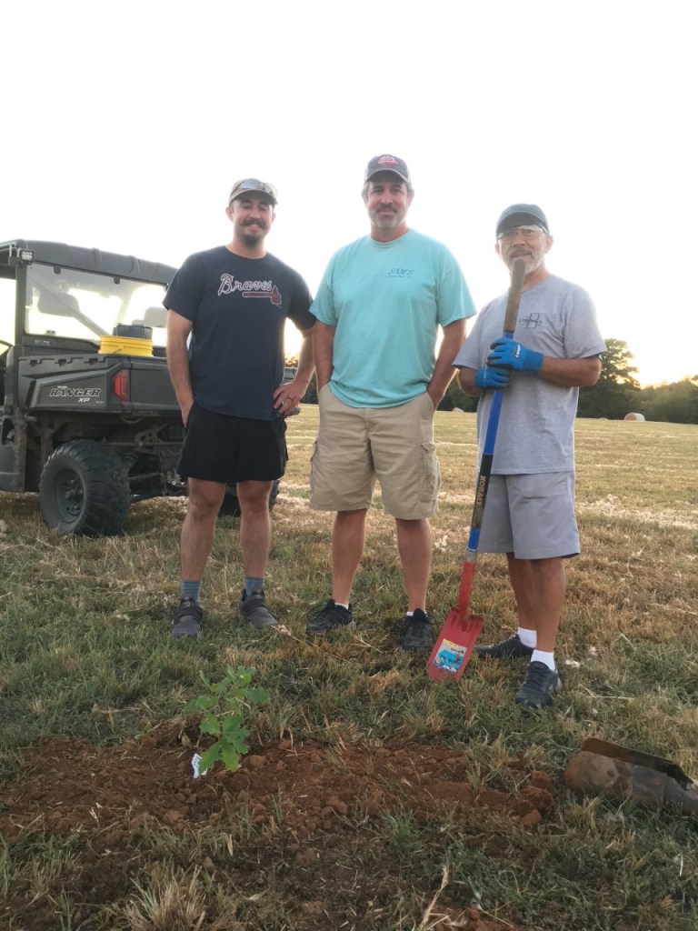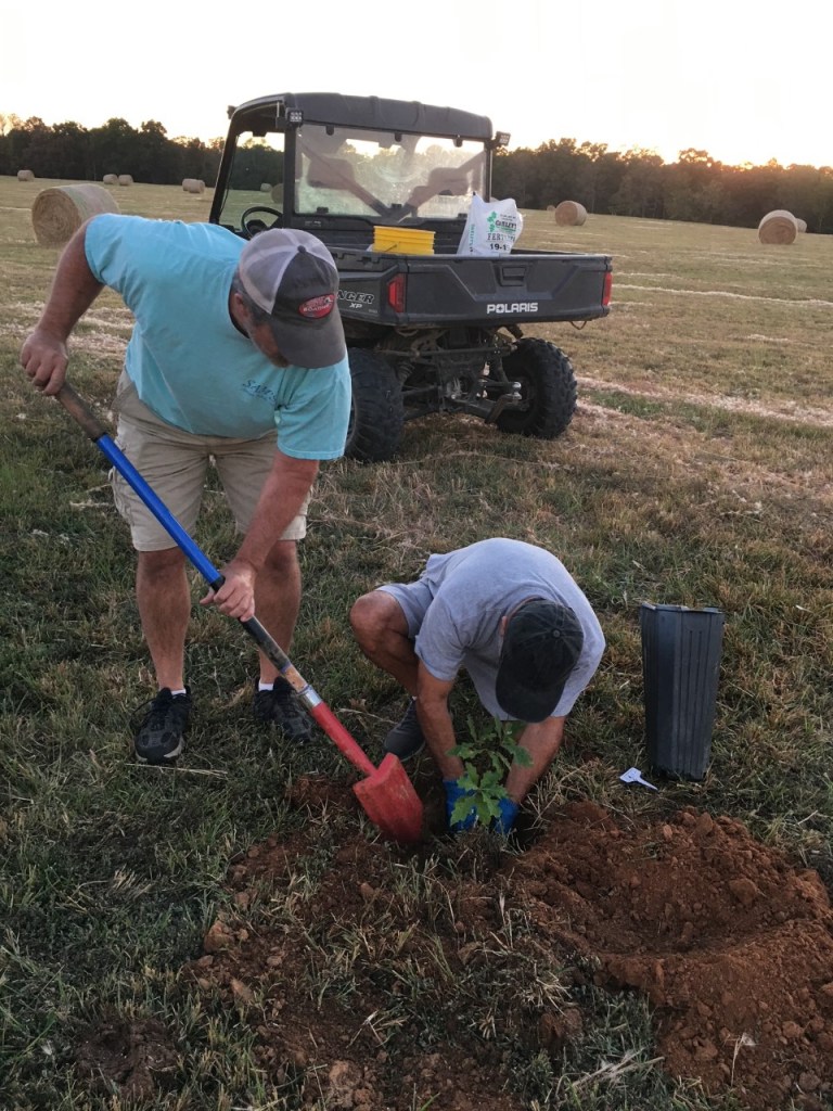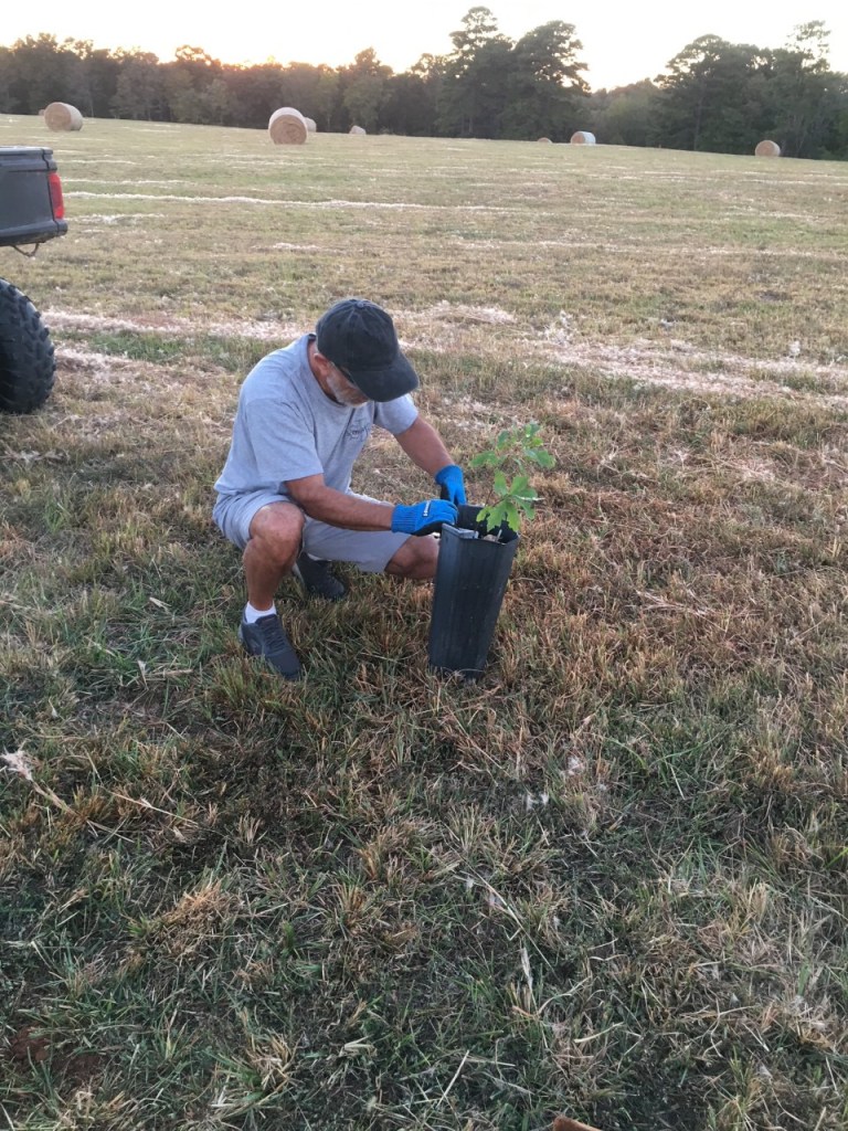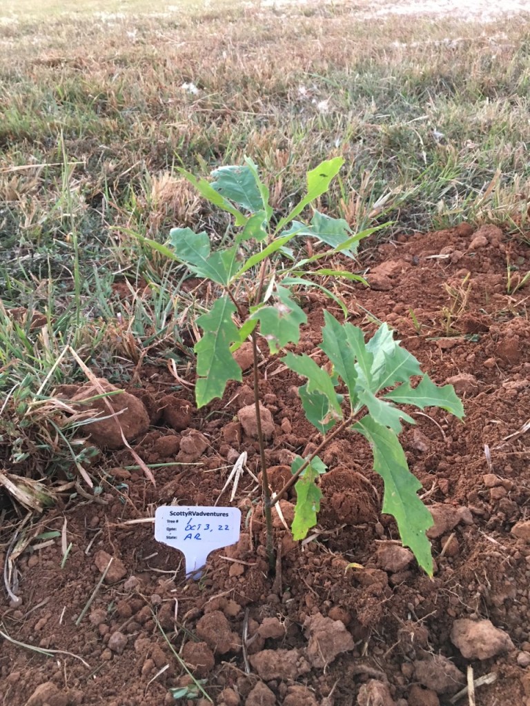 Well, thanks to the Forest Dept of Arkansas and to Sam and his son Reagan and lovely wife Meagan who made it possible to plant a healthy Oak in their grounds, we made history by planting the first out of 50 trees….