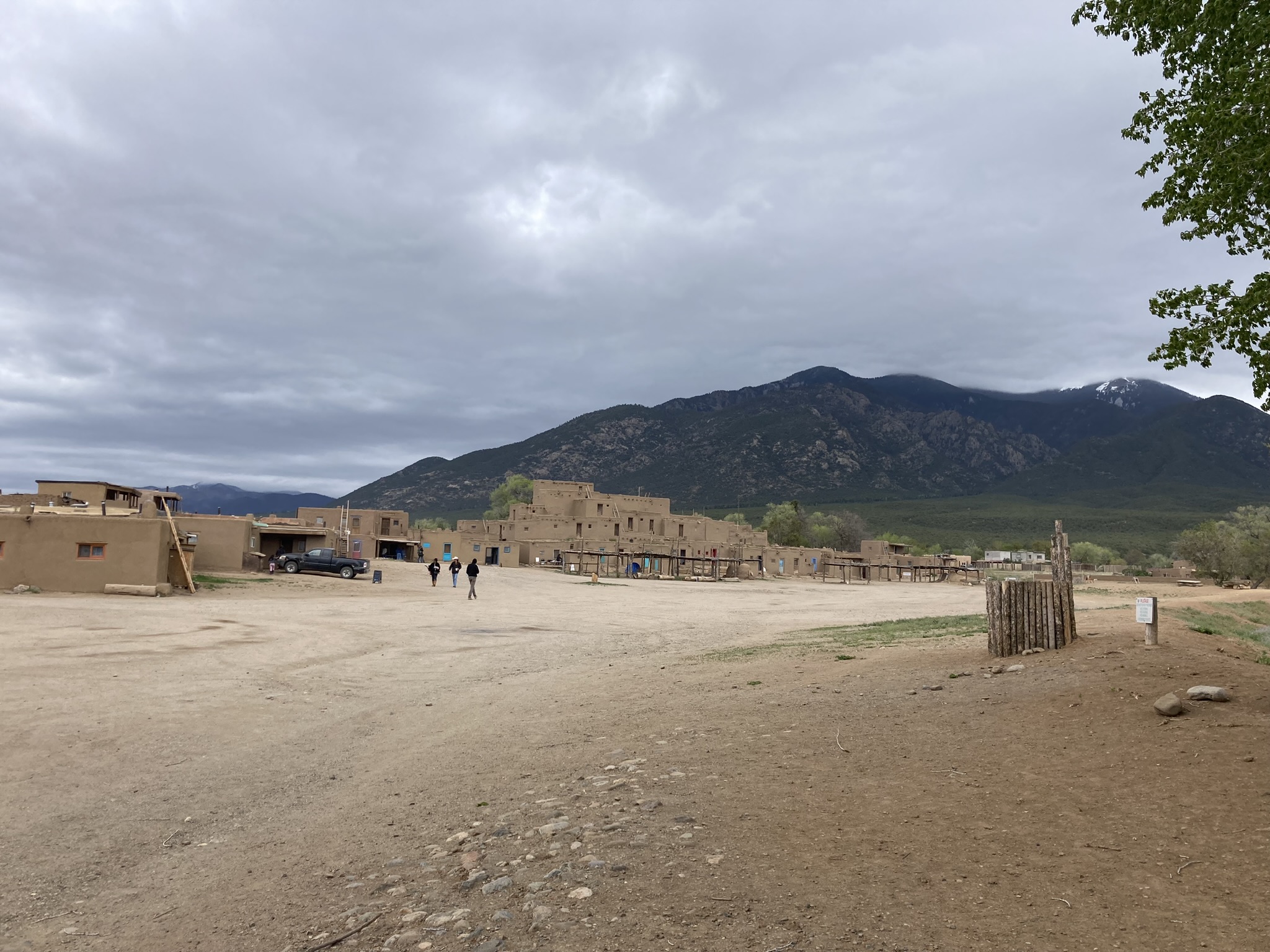 Okay, a little background about Taos Pueblo. It is classified as a Native American community. Its beginning dates back a thousand years and the inhabitants have lived over here with no access to utilities but instead, they keep the same traditions of their ancestors; drink the water from a sacred lake that runs downstream, and light / heat comes from fire made up from wood logs in fire places. The dwellings are located around a large plaza that also accommodates the church.