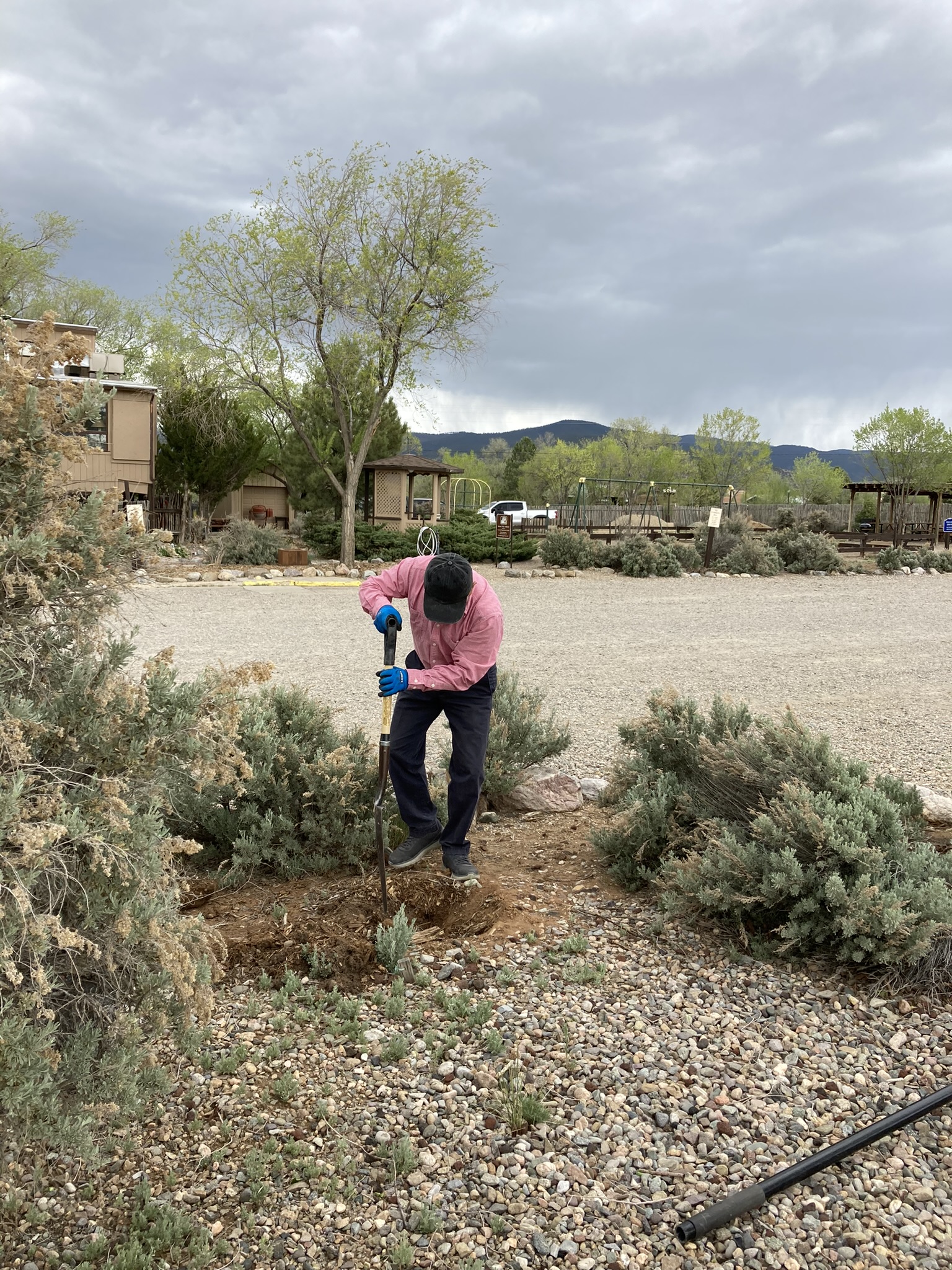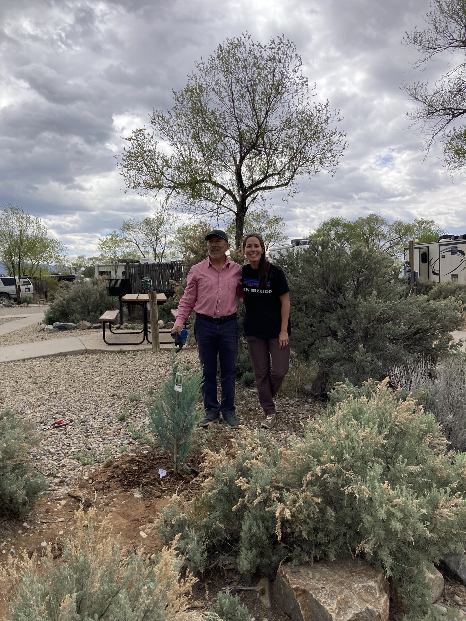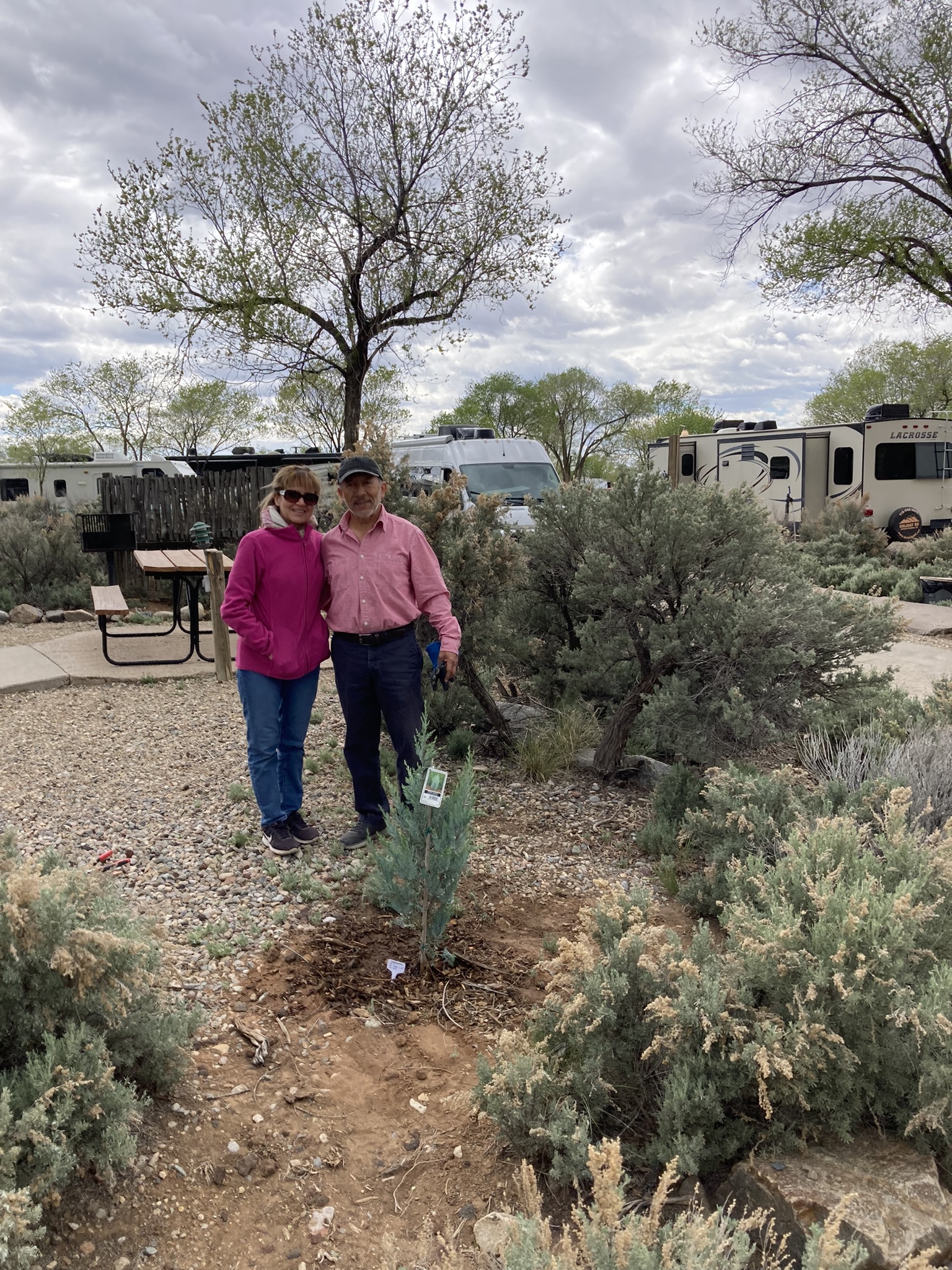 This time a beautiful Juniper tree has been planted in the grounds of the Taos Valley RV Park. Lovely Elena and husband Rich were so happy to be chosen as the carers of this future Christmas Tree alive!!