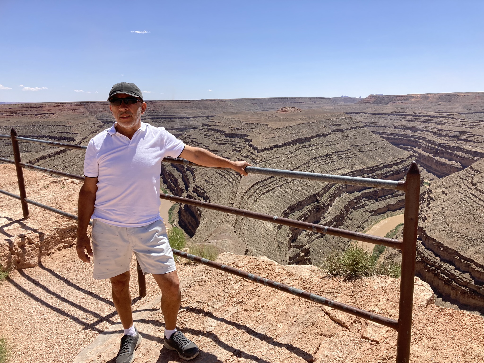 As we came down to surface level after that scary road, we headed to Goosenecks State Park. This is a sample of what a river can do to the ground trying to find a new river bed.
