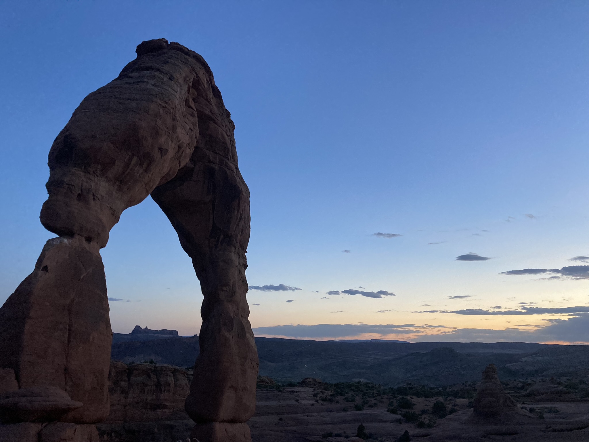 And this is Delicate, the best of all. The world-famous Delicate Arch was formed by the movement of underground salt beds beneath overlying sandstone, in concert with surface events including water, ice, and erosion, which washed away or broke off the sandstone to create the arches and fins found throughout Arches National Park.