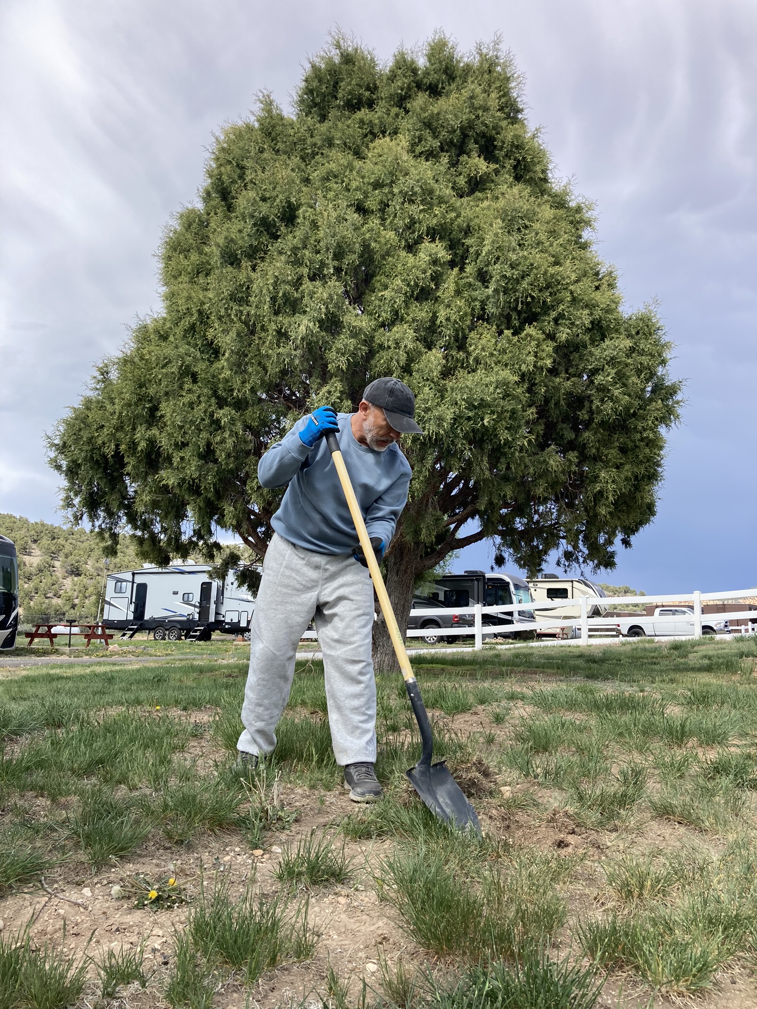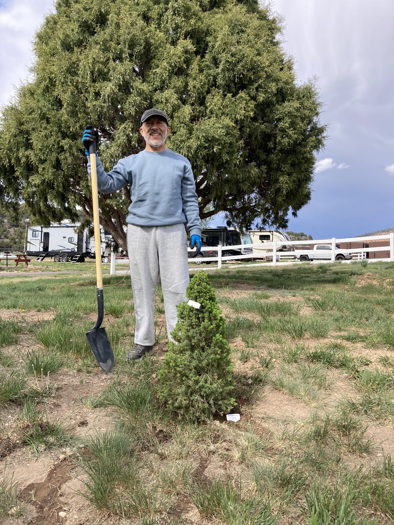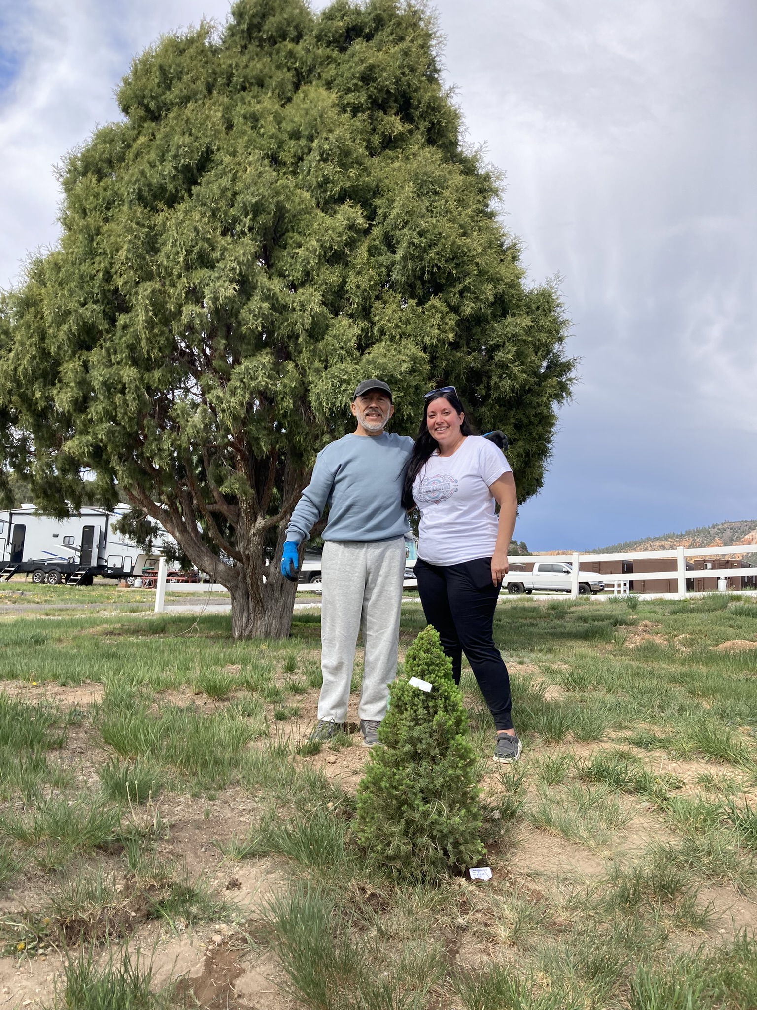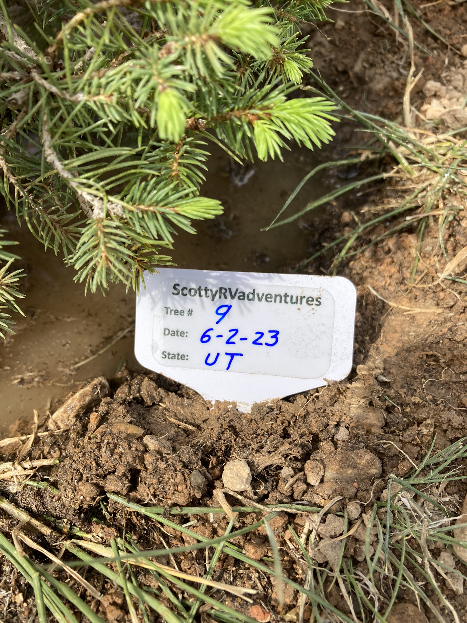 The tree for Utah was planted at the Red Canyon RV Park located in Red Canyon Village…. really nice!! This conifer will one day be the Christmas decoration for the park!! Olivia and Bren were kind enough to assist us on the task!