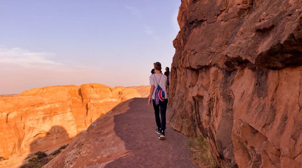 Something I have to mention which needs to be taken into account when visiting these marvels of topography in most National Parks….. they are dangerous !! You are walking or standing next to deep cliffs…. and Delicate wasn’t the exception: next to the center of the arch you can see that it is clinging on the edge of a very deep cliff … 400 ft free fall , so you better be careful!!
