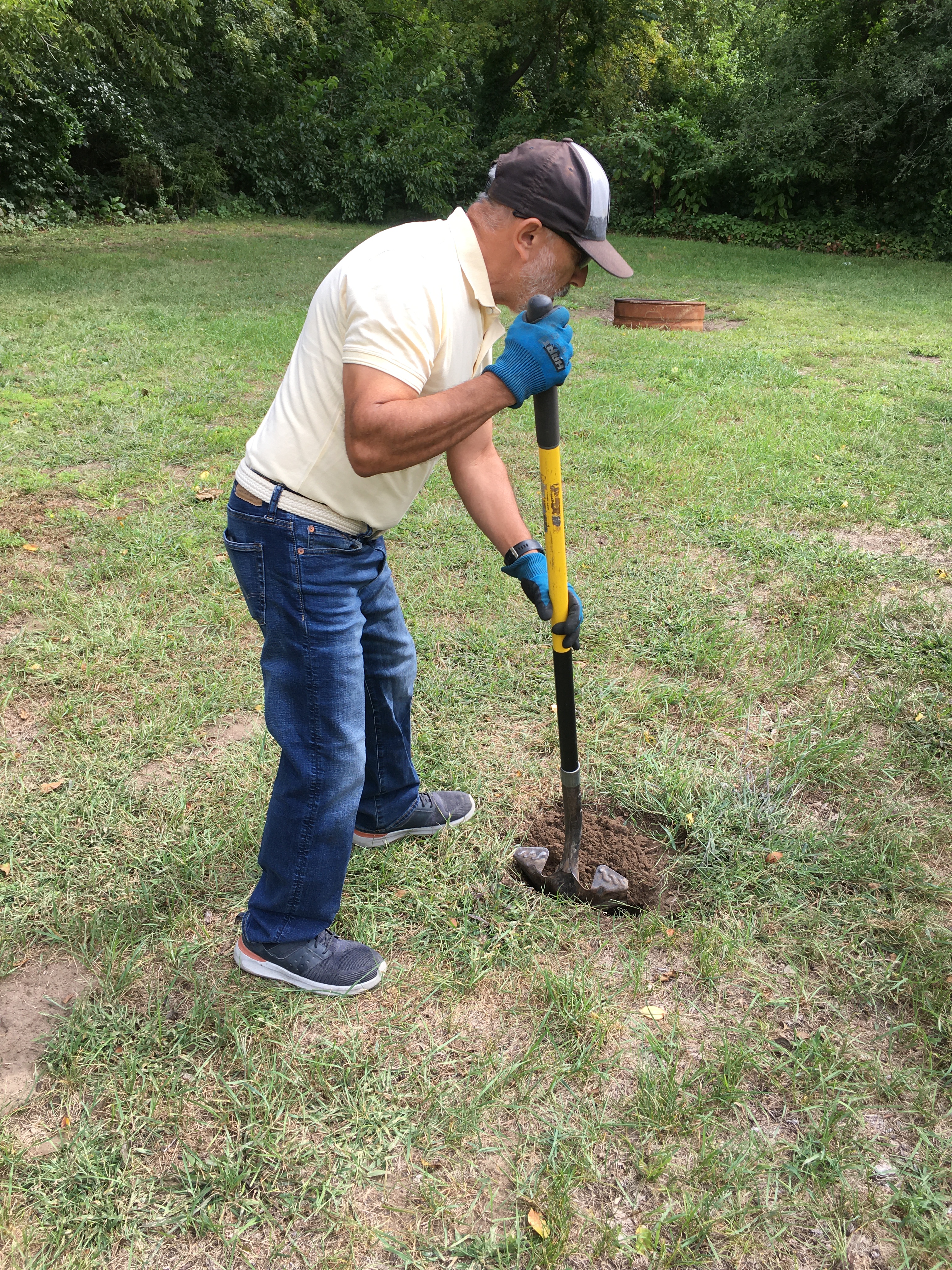 And here we have the KOA staff (owner Rob and Erin along with Dina) helping us out to plant the tree that belongs to Illinois. And this is something that doesn’t happen everyday….. Rob liked the idea of planting a tree in every state so much, that he made a donation for us to buy the next tree!! That will be the one for Wisconsin. Very kind of you Rob, appreciated ☺