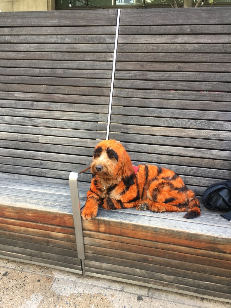 And this one doesn’t even imagine why his owner dyed his fur to resemble a tiger!!