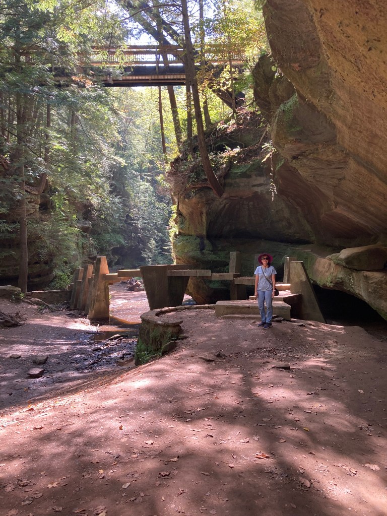 So!! What’s the story about the Old Man’s Cave? The site is named after Richard Rowe, a 19th century hermit who lived in the large recess cave. Rowe and his family were early settlers in the Ohio River Valley, and after a period away, he returned to the area, living as a recluse in the cave until his death. The cave, part of Hocking Hills State Park, is not a true cave but a large, dry rock overhang formed by a glacier.